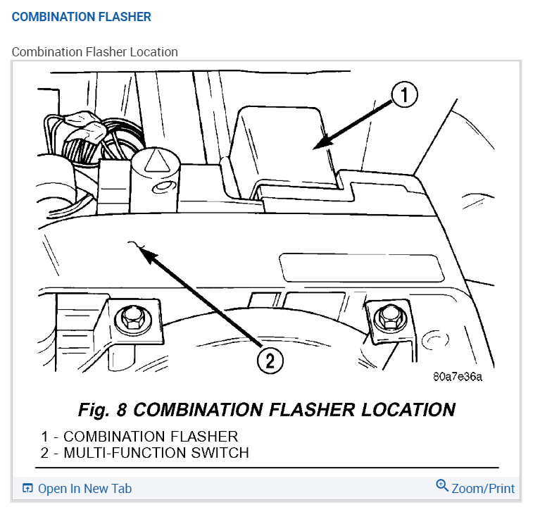 The flasher is mounted to the back side of the multi-function switch. To gain access, the upper steering column cover must be removed. Push the flasher toward the rear of the vehicle. The flasher is black in color for ease of identification.
