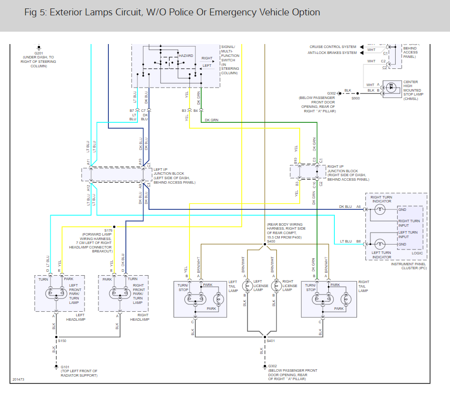 With the brake pedal applied, only the center exterior break light turns on. Bulbs have been replaced.