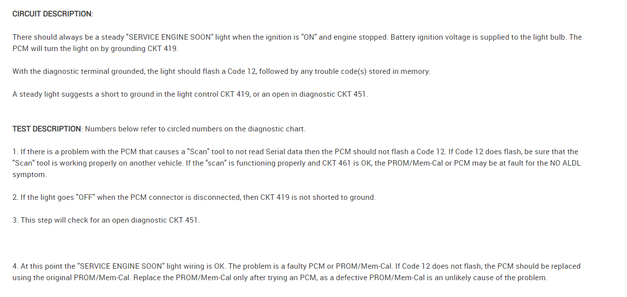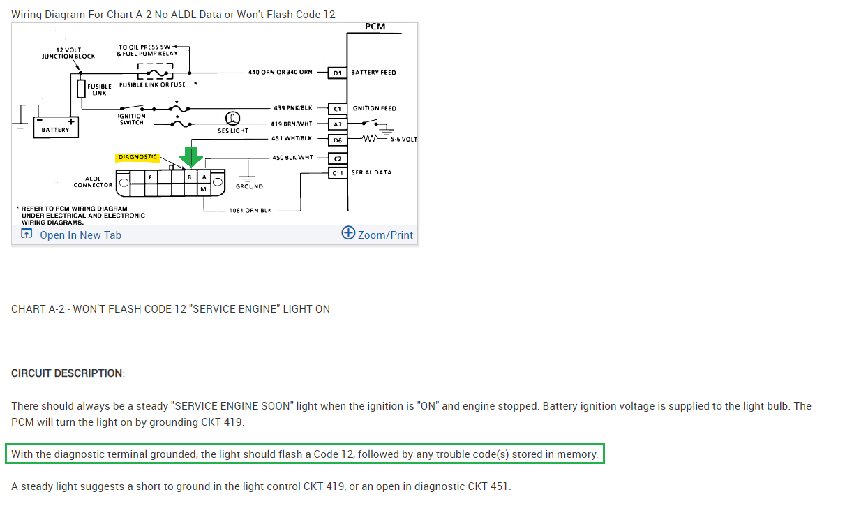 You could also check for any trouble codes by grounding the Diagnostic pin at the ALDL connector, it should flash the Check Engine light a 12 if not codes are present. This is an old OBD 1 system, so flashing the Check Engine light or Service Engine light soon is how codes are retrieved from the PCM.