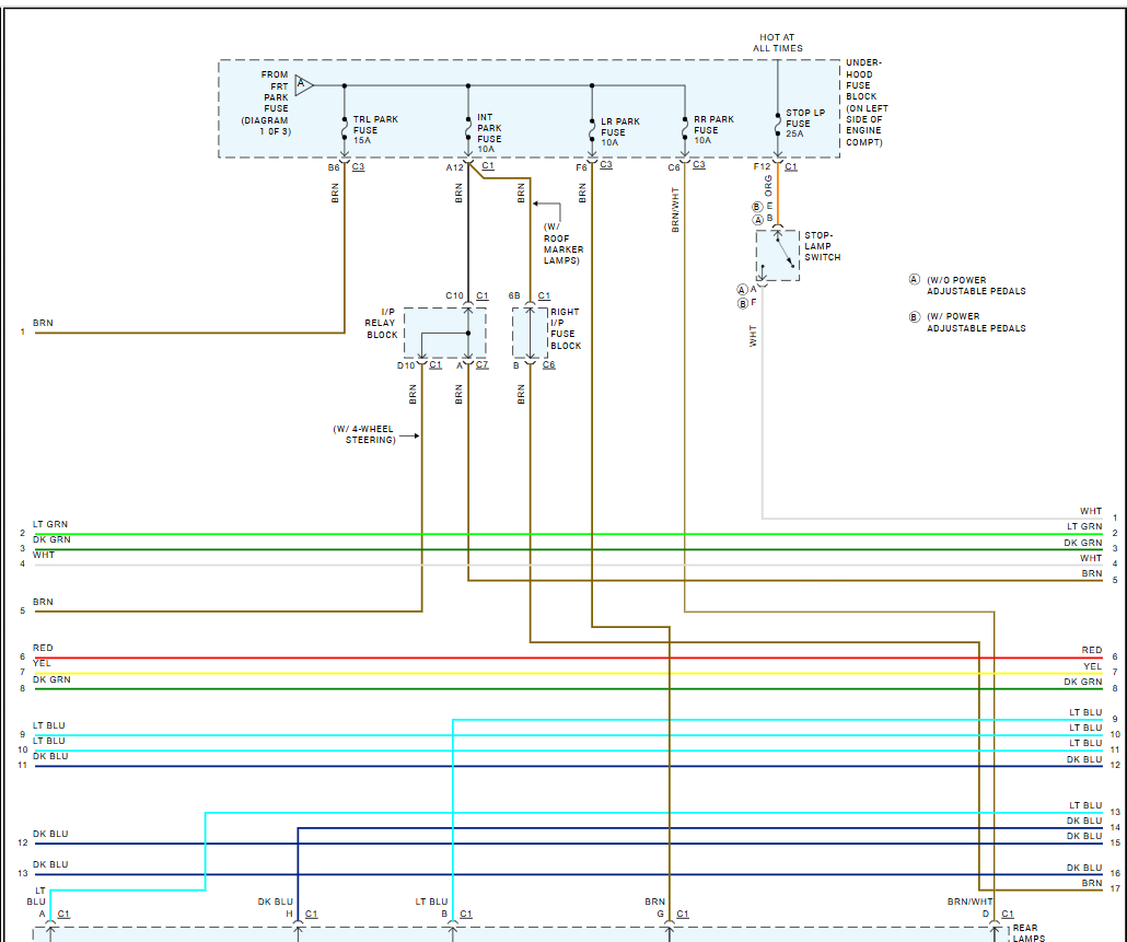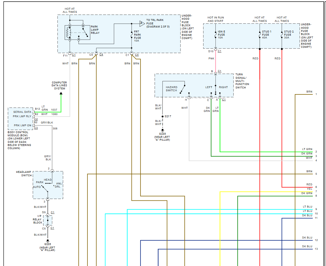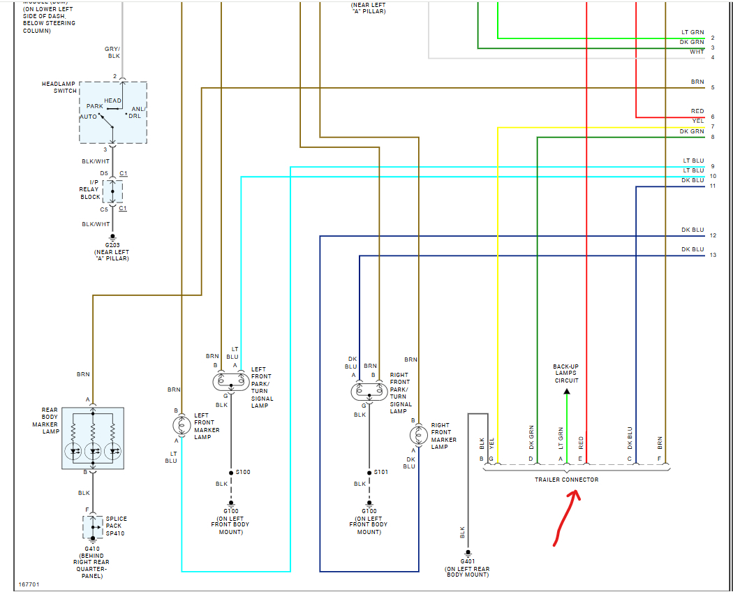 Looking for factory wiring color diagram for 7 pin trailer lights plug for the SUV listed above that doesn't contain a white wire.