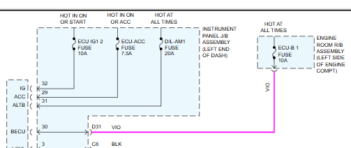 The ECU-B1 is a 10A fuse and it’s good. I replaced it just in case. No luck
