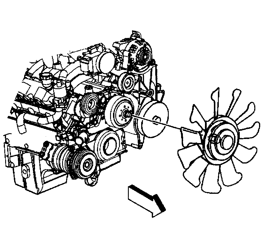 6. Install the upper fan shroud. Refer to Fan Shroud Replacement - Upper (W10 M74) or Fan Shroud Replacement - Upper (WIM74).