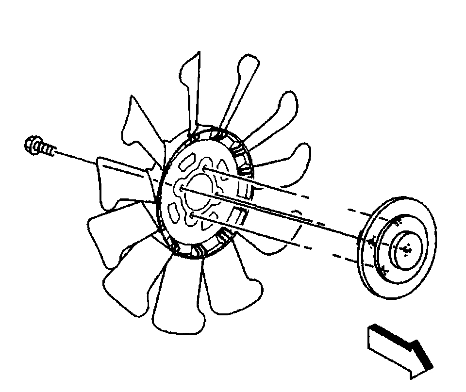 5. Remove the fan clutch bolts from the rear of the fan blade.