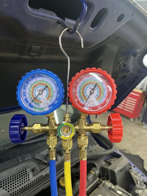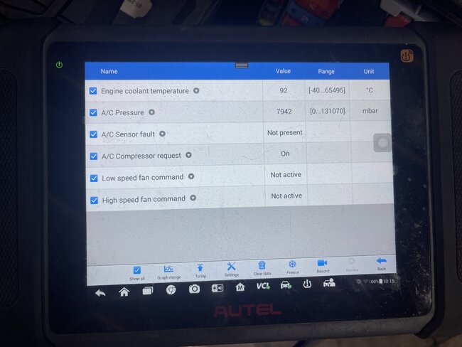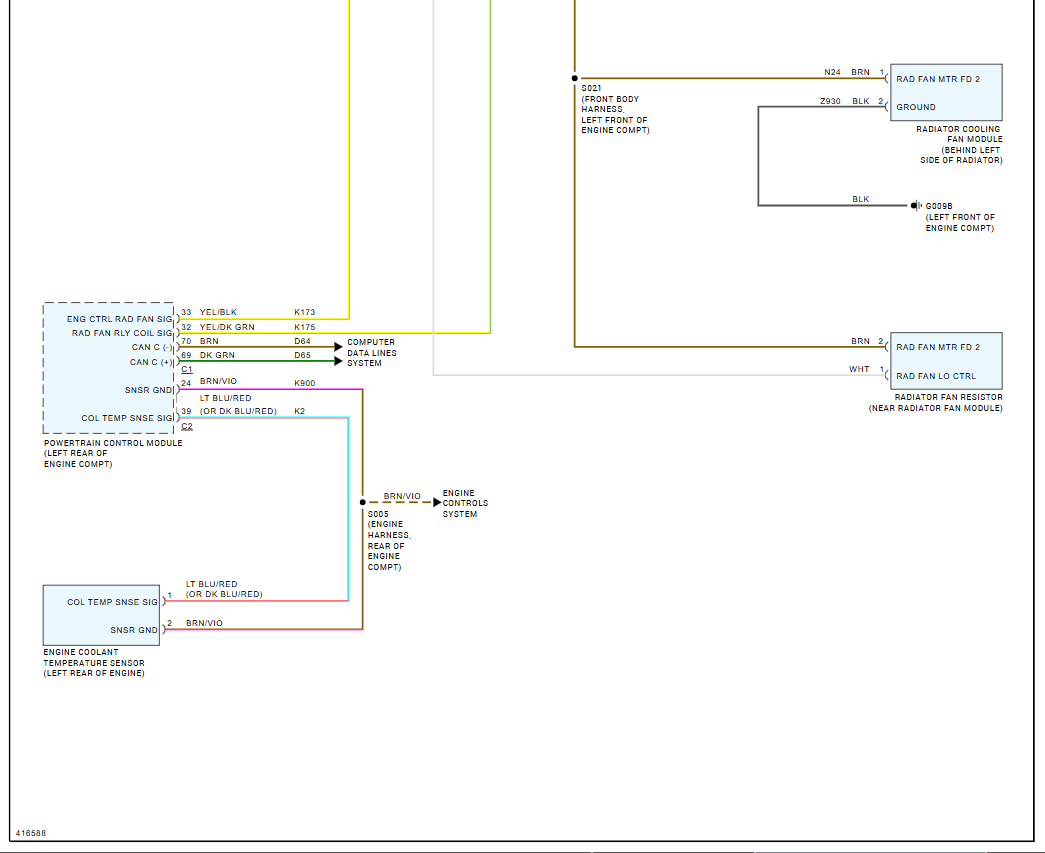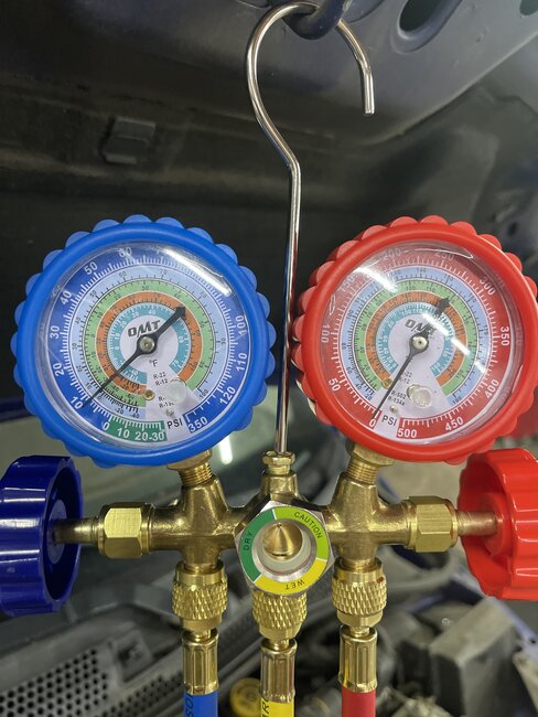 Blower inside the car works, the A/C button lights up, compressor wasn't running, turned it by hand and it moved. I added a tiny bit of freon, and it kicked on so I guess it was a tiny low. Air was kind of cool but not cold then I saw that the radiator fan isn't on. Is there a common issue with these as far as that? And where would be the fuse on it for the fan and what would you suggest checking on it? Thanks. Also, P0128 code is in there. Not sure if the thermostat code is related. I just checked 2 fuses and switched the niddle red relat and still nothing. Removed power to fan and applied battery power and it spun. Out it back together and the fan kicked on for like 7 seconds. Then it stops. Then in another half minute does the same thing. Actuated fan via scanner at both speeds and both were fine. Isn't the dan supposed to be on all the time while A/C is on?
