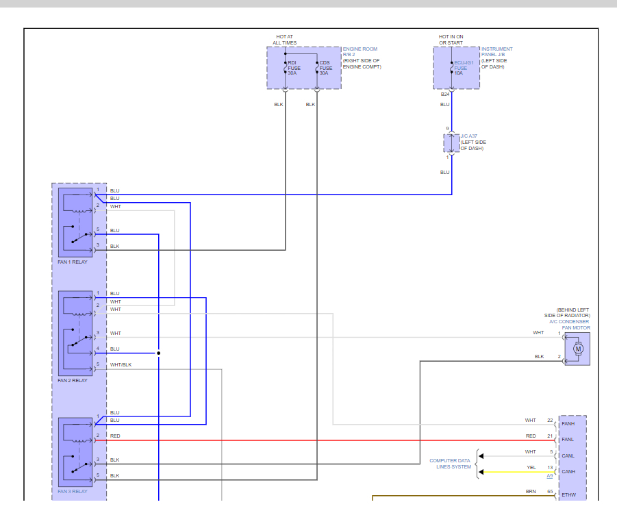 Most of the time it will be a bad fan motor that has popped the fuse, or the relay is overloaded and failed. Here is a guide to help you test the fan motor, but I would check the fuses as well. Also, I have included a wiring diagram for the system so you can see how it works.