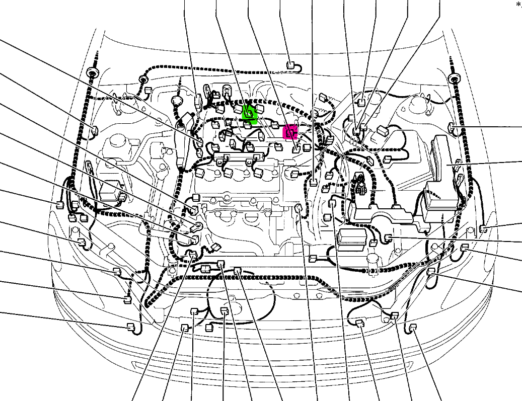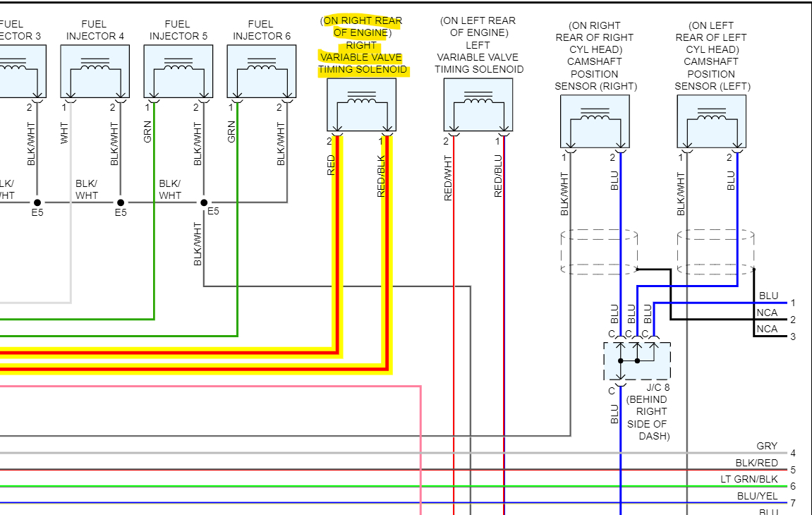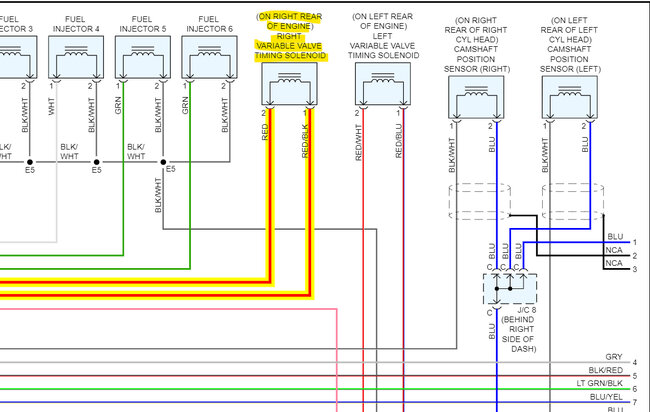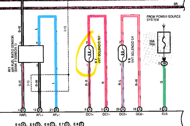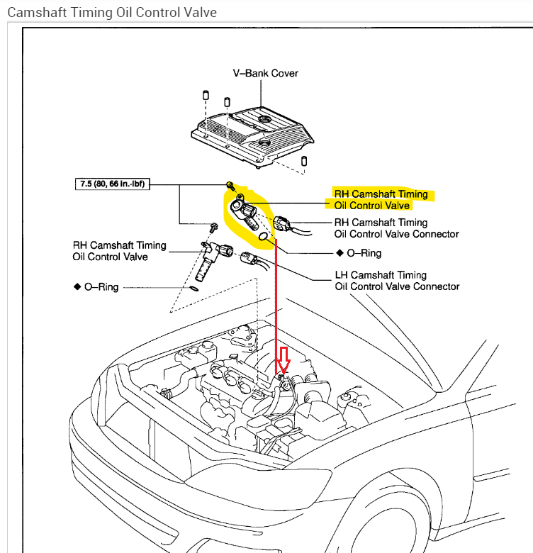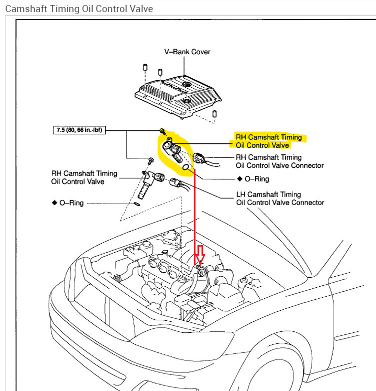 The Green mark below is the B1S1 AF sensor, the red mark is the VVT rh solenoid that's coding.