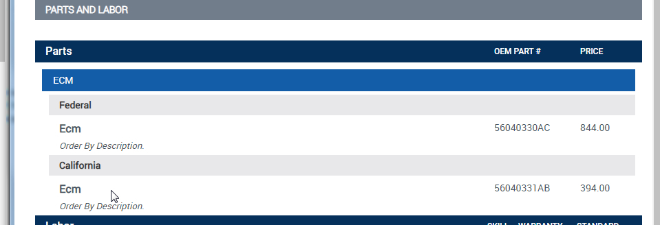 Also, I attached the part numbers for your PCM and it appears the used PCM that you are looking at is the current software level so it should work just fine. Also, as you can see the CA PCM part number is 331AB. The 1 is what makes this a different PCM and that would not work in your vehicle as the emissions requirements are different. It may function but the vehicle would most likely run different and may set a DTC.