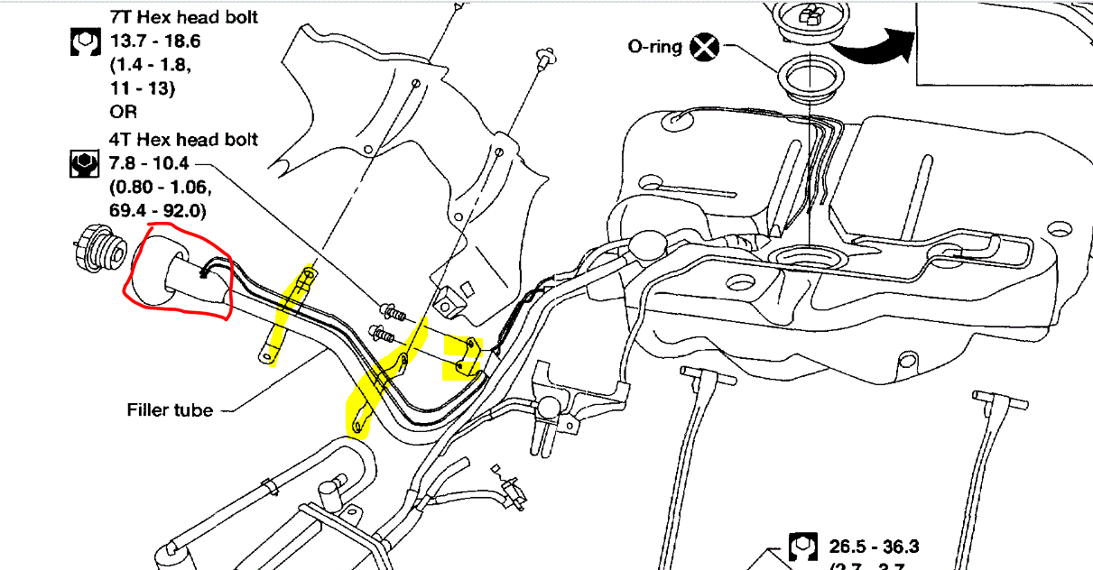Interestingly, there isn't much of anything regarding the filler tube. What I did find is an exploded view to at least give you an idea of what to expect.