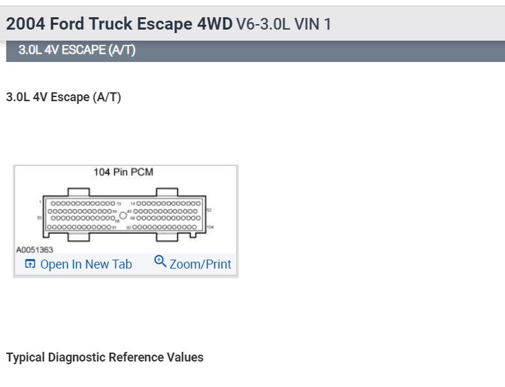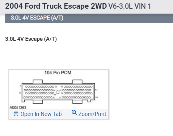 Presently I am okay with the picture of the terminal (104 pin) The terminal seems to be exactly similar to my ''4 wd '' Escape 2004, I understand also the similarity of this connector to all Escape 2004 V6 AT 2wd and 4 wd, and probably all those 2001-2004. Now I am looking at the electrical diagram with the pin number (color if available) and the destination off those wire (coil, injector, IAC, O2.)