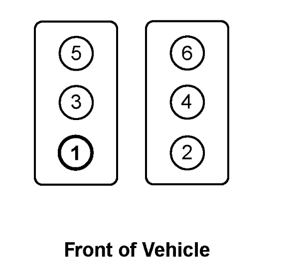 The cylinders are arranged in 2 banks of 3 with a 60-degree included angle. The right bank of cylinders are number 1-3-5 and the left bank of cylinders are 2-4-6, viewed from the flywheel end of the engine. The engine firing order is 1-2-3-4-5-6. (See pic below)