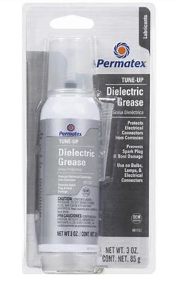 Some sets of wires will come with di-electric grease if not you will need to get some. Permatex makes a self-dispensing can almost like cheese whiz. Trust me, you will love it. I included a picture below. Di-electric grease is non-conductive so it’s really for the rubber to create an insulated seal.