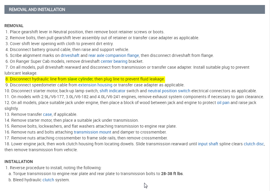 The truck is 2WD and the hydraulic line goes through the bell-housing to the throw-out bearing. Does it have a clip like a fuel line?