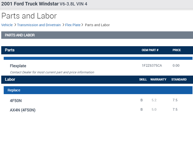 On this Windstar 3.8L, the flywheel/flex plate OEM part number is 1F2Z6375CA.