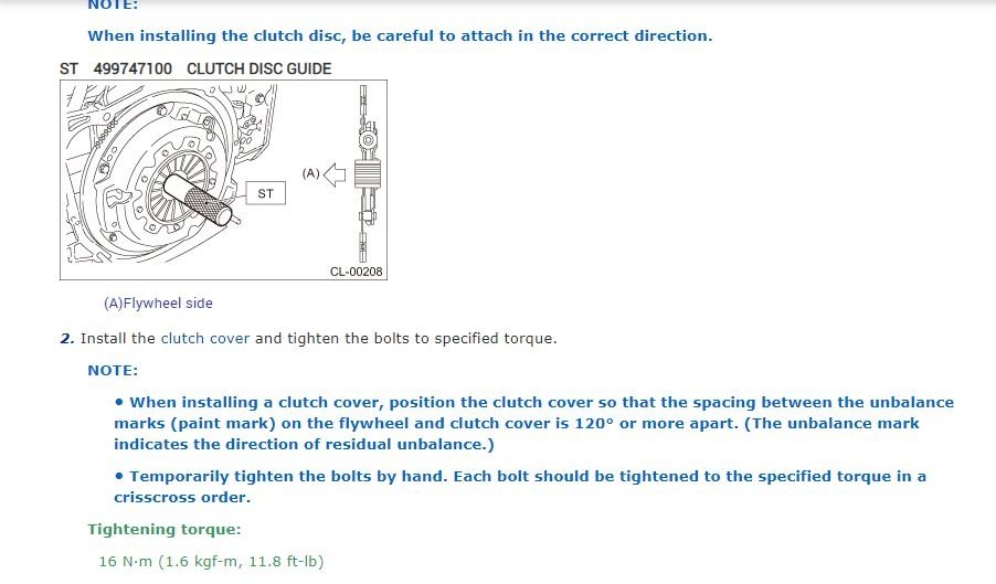 This is a WRX with the 2.0T. Torquing flywheel to engine, pressure plate to flywheel specs please.