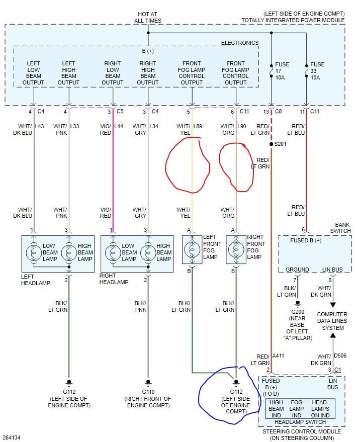 The 2 volt drop on the fogs shows you have a problem, Probably corrosion in the system either at a connector or the wires themselves. The issue isn't so much voltage as current. That is why a meter works but using a test light with a higher load works better. To explain it, think about what the wire does, a single strand of very light wire will show correct voltage, but that single strand cannot carry the amount of amperage needed to light the lights. So they wind a few strands together to increase the amount of current the wire can carry to light up the lights. In your case the wires cannot carry that amount and you get no lights, plus as there is an issue it also is blowing the fuses. I would trace the fog light wires back, you need to look for damage, rust or other reason why the wires cannot carry the proper current. It's one of the reasons I try to use a test light in situations like this, the loading makes a difference, in your case the fog lights are the test lights. As you are going to school for this you might want to ask about voltage drop and what it means.