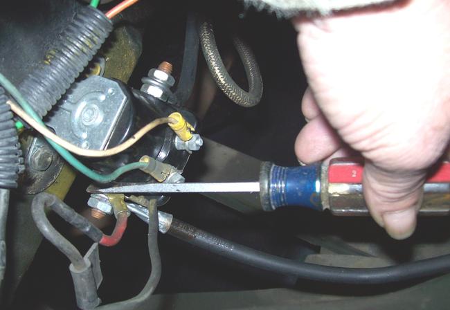 IF YOU WANNA VERIFY THE PROBLEM IS ALONG THE WIRE LEADING BACK TO THE IGNITION SWITCH (IGNITION SWITCH, NEUTRAL SAFETY, THE WIRE ITSELF). ALL YOU GOTTA DO IS USE A JUMPER WIRE FROM THE POSITIVE SIDE OF THE BATTERY TO "C" ("S TERMINAL"). IF IT TURNS OVER, THE WIRE YOU HAVE ON THERE, IS EITHER THE WRONG ONE, OR IT IS NOT GETTING THE 12 VOLT SIGNAL THRU IT
