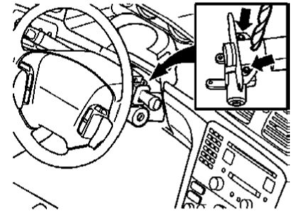Press in the snap fastener and remove the steering wheel lock unit