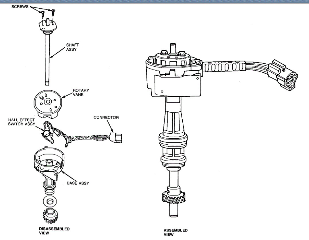 If it does, then we need to check the pick-up coil in the distributor. See pic 2 below. It is a hall effect sensor that should produce voltage when the engine is cranked. Using a digital multimeter (DDM), check for a DC voltage signal from that component when the engine is cranking. If there is none, replace the sensor.