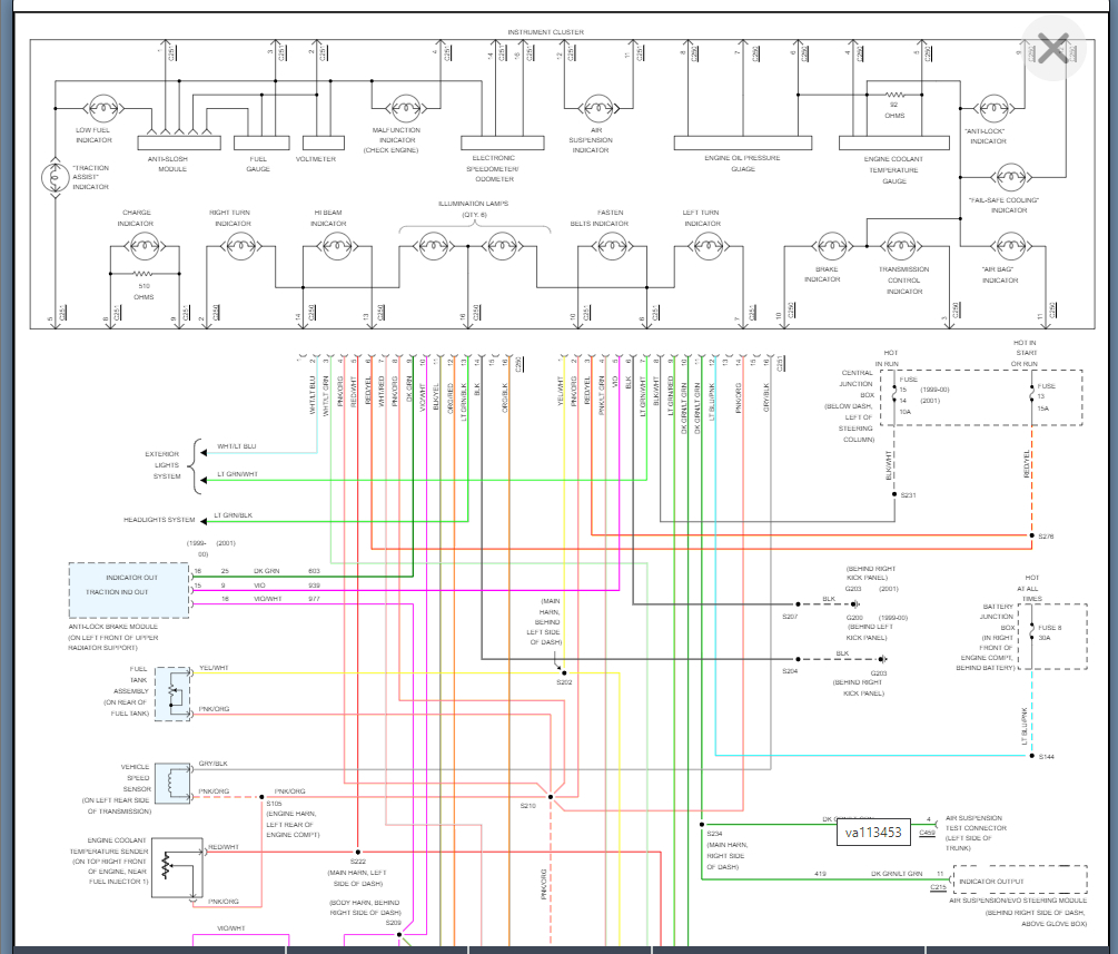 I am attaching the wiring diagram that will help with this because if it is the fuse that feeds just the cluster then the cluster is shorted and is the issue.
