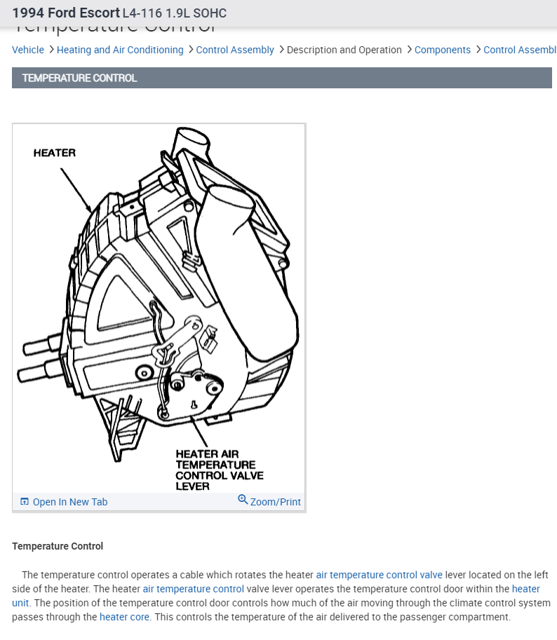 When you push the lever to change the temperature, there is cable that runs from the lever to the blend door control to change side from hot to cold and cold to hot.