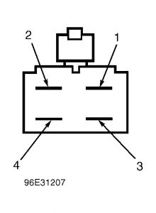 Check Voltage From Blower Motor Resistor Turn ignition off. Disconnect blower motor resistor 4-pin connector. Turn ignition on. Measure voltage between ground and blower motor resistor terminal No. 4. See Fig. 5 . If voltage is greater than 10 volts, go to next step. If voltage is not greater than 10 volts, replace blower motor resistor. See BLOWER RESISTOR under REMOVAL & INSTALLATION. Fig. 5: Blower Motor Resistor Terminals Courtesy of FORD MOTOR CO.