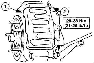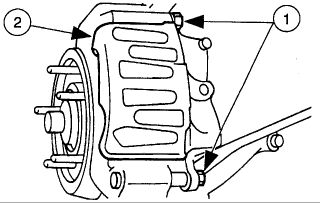(2) Lift the front disc brake caliper off the front disc brake caliper anchor plate and position aside.