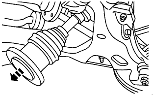 Separate the front wheel driveshaft and joint from the hub and remove the front wheel driveshaft and joint from the vehicle. CAUTION: Use caution to avoid damaging the hub seal when removing the front drive halfshaft.