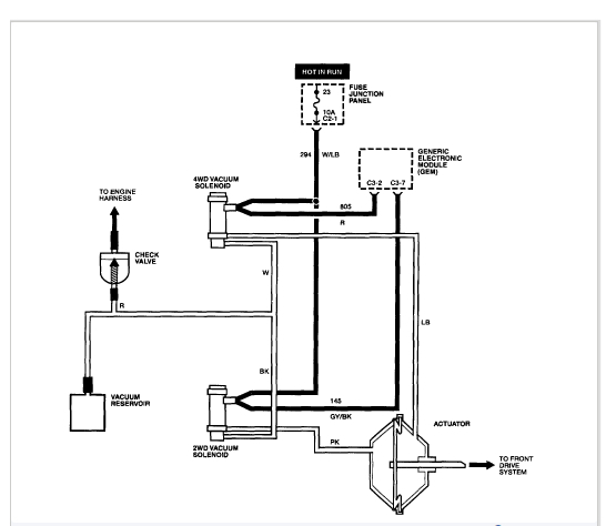 Check the vacuum line that goes to the transfer case. Make sure it does not have any crack or break.