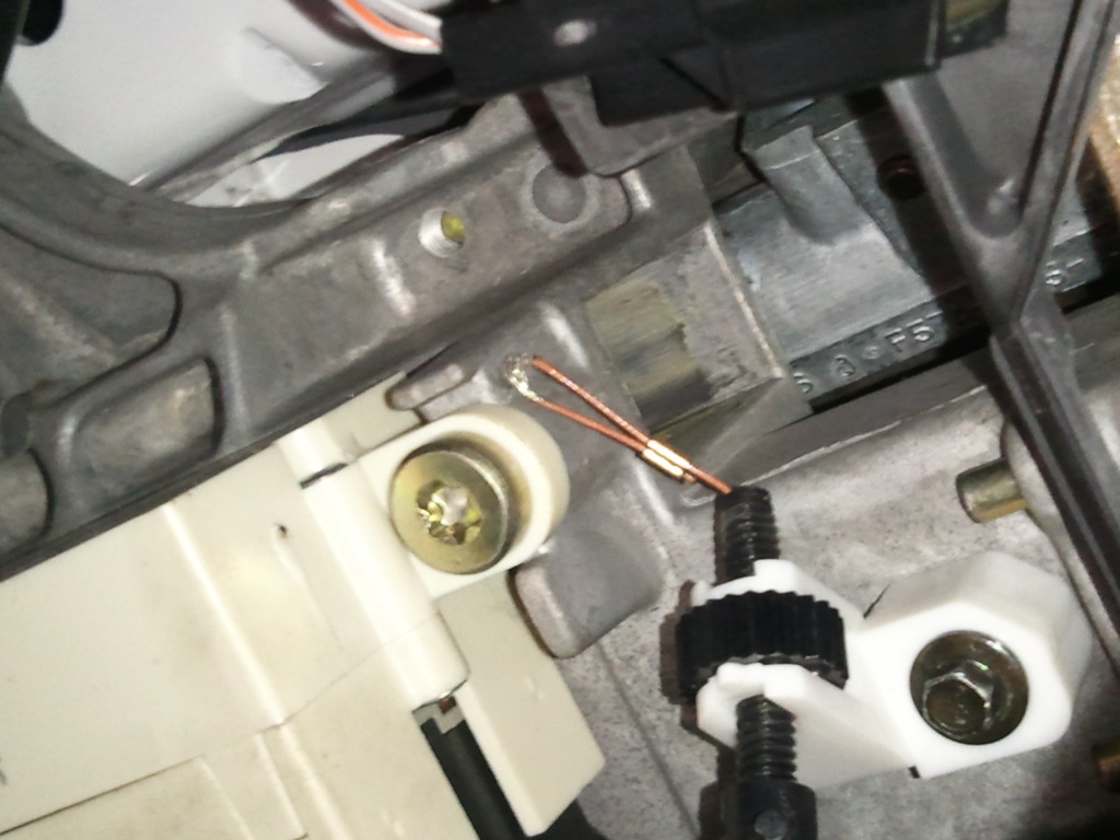 Following that wire downward, you'll come across a white fitting with a black nut captured in the center of it.