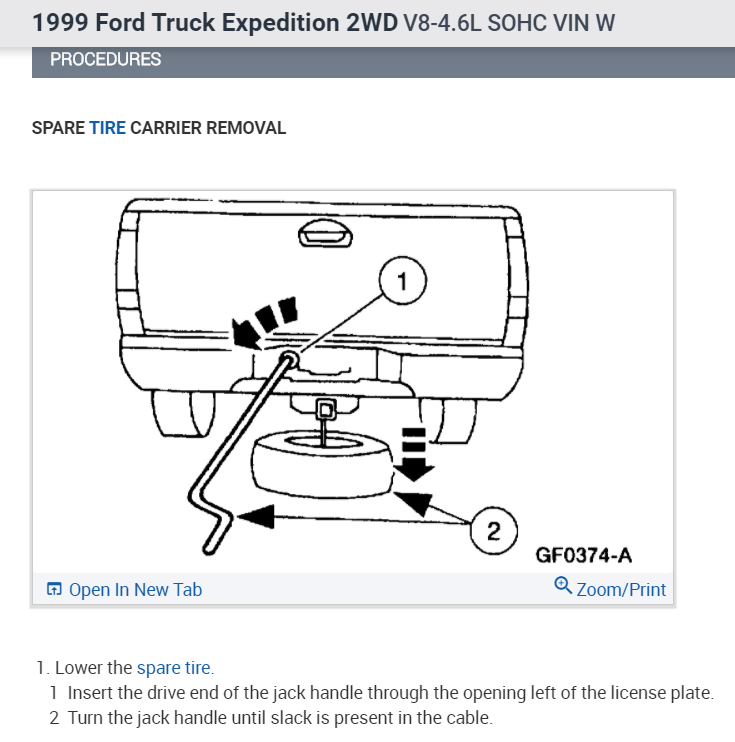 Open the liftgate. Just above the rear bumper is the guide tube. It may have a plug covering it. Insert the straight end if the jack handle into the tube. Turn it counterclockwise to remove. Pushing it in, turn it until you feel resistance. Once you feel it, turn the handle counterclockwise until the tire is lowered. Reverse the order to replace. Check out the diagrams (Below). Please let us know if you need anything else to get the problem fixed.