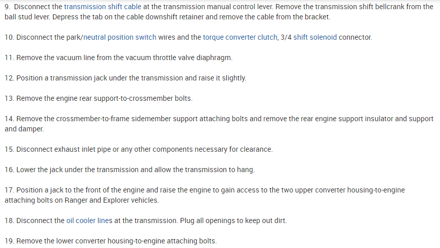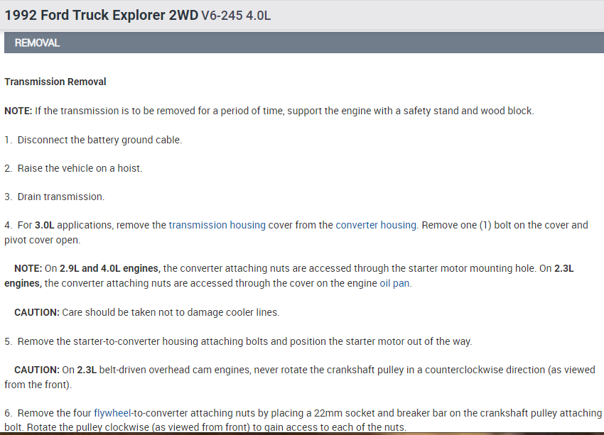 While driving along in my car/truck, I stopped at a red light. When the light turned green, I tried to go but my truck would not move. It will drive backwards, but it will not go forward. Please tell me how to remove the transmission.