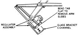 Install new regulator arm plastic guides into the C-channel and bend the tab back 90 °. If the tab is broken or cracked, replace the glass bracket assembly. Make sure the rubber bumper is installed properly on the new glass bracket, if applicable.