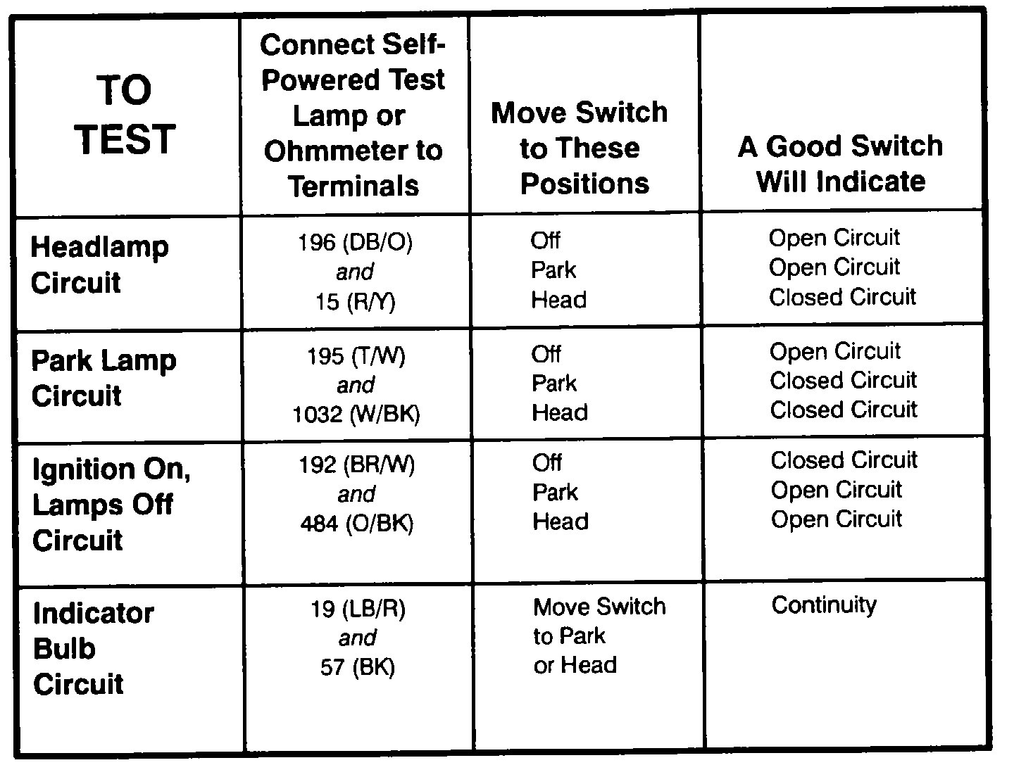 Vehicle Sensors and Switches Sensors and Switches - Lighting and Horns Headlamp Switch Service and Repair Procedures