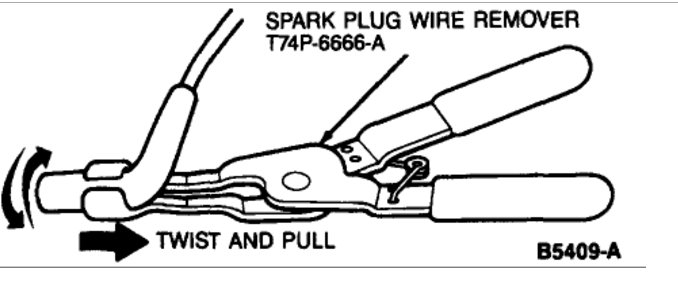 CAUTION: Whenever an ignition wire is removed for any reason from a spark plug or ignition coil or a new ignition wire is installed, coat the entire interior surface of the boot with silicone dielectric compound with a "small clean tool" prior to installation.