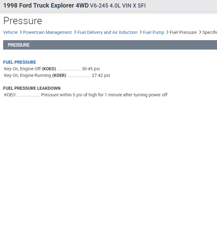 This vehicle should have 30-45 PSI of fuel pressure with the key on and engine off.