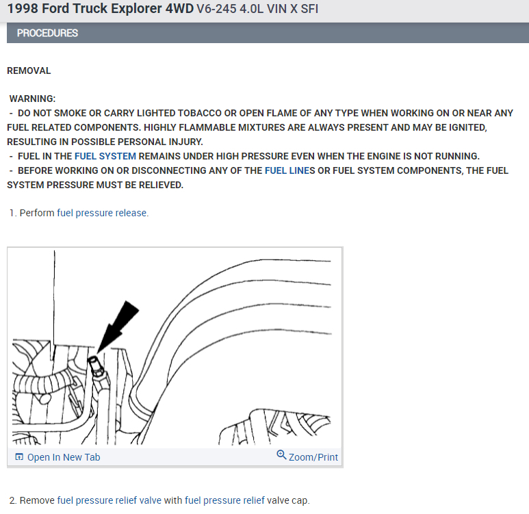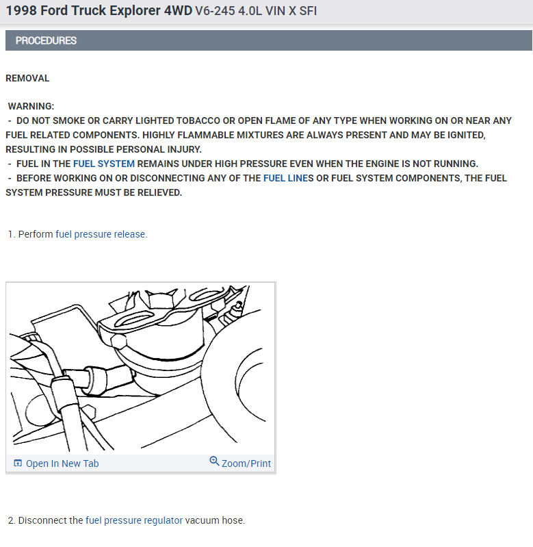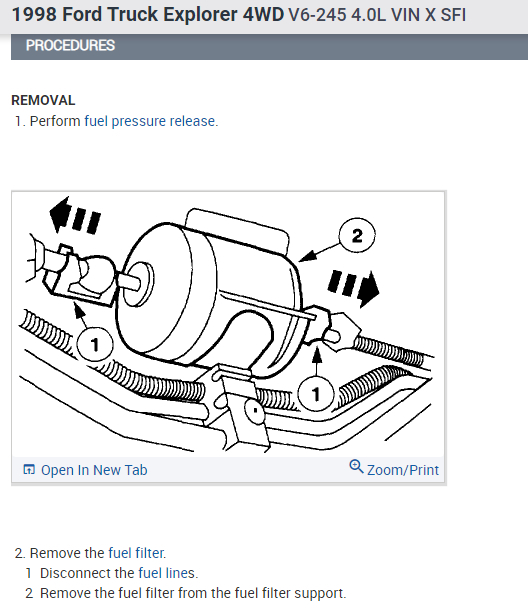 I have attached the fuel pressure test procedure as well as regulator, fuel pump and filter replacement instructions for your reference.