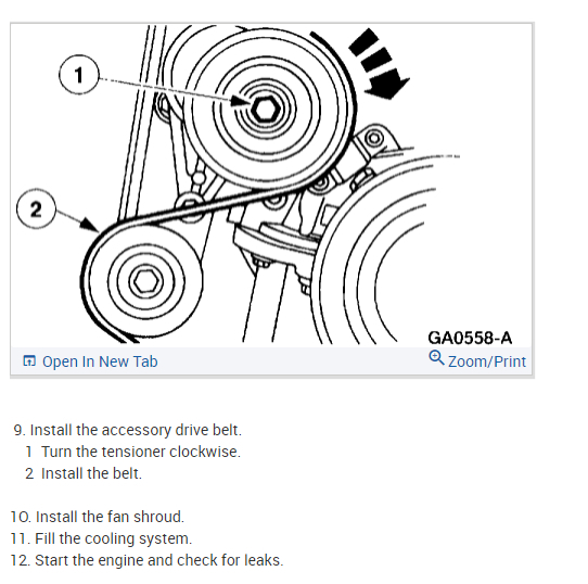 In order to replace the water pump in this Explorer, you will have to remove the engine cooling fan shroud and the drive belt.