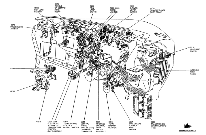 It is located in the front seating area, driver side, behind dash. It's mounted on steering column. Here is what it looks like: