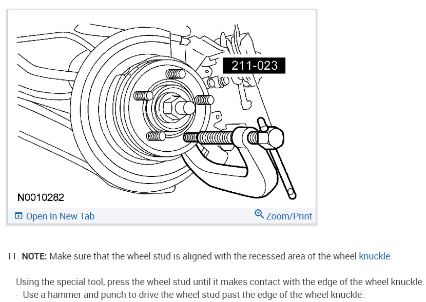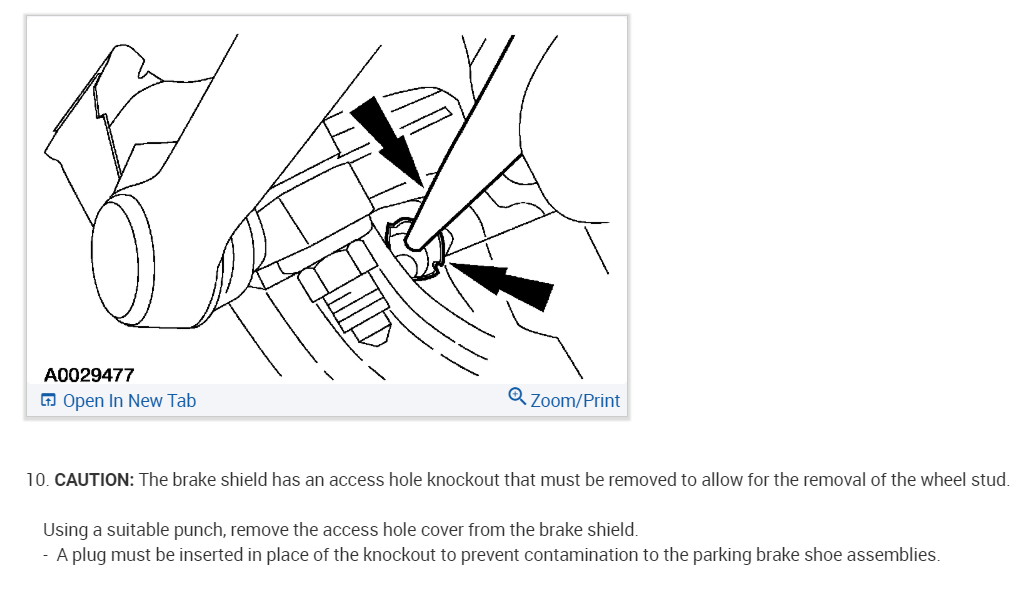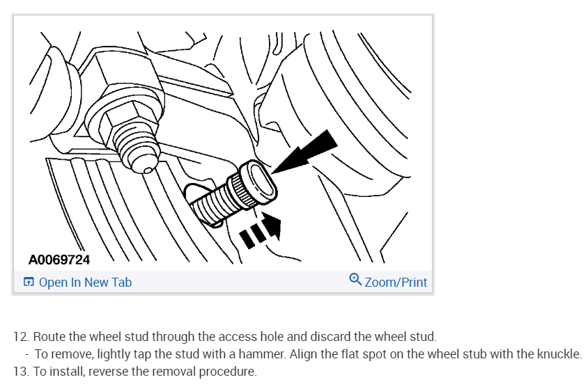 Do I need to remove the e-brake or hub to change the the wheel stud on the rear disk brakes of my 2005 Ford explorer? If not, what is the best location for the stud to be in for replacement?