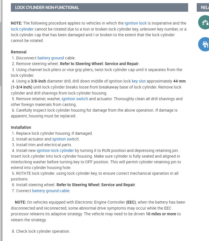 As for replacing the ignition cylinder, I am attaching that process from the manual.