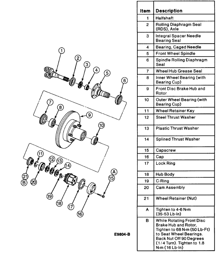 Ok first off you need to remove the outer hub, there should be three screws that hold the outer hub on. Then there is a snap ring in the hub that you will need a pic to make it easier to pull out. Then you can remove the inner section of the hub, Then there is a snap ring or c ring remove it, then remove the washers and the cam assembly then the retainer key and then the wheel bearing nut then the rotor will slide off with the bearing. Here is a pic with a brake down of everything.