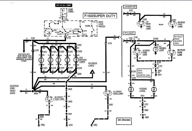I read through your post. As a result, I opened up the wiring schematic from Ford it look at the signal lighting circuit. Based on what I am seeing, this isn't an issue with wiring causing two opposite sides not to work. Interestingly, the hazard lights, which you indicate work, use the same wires, but they are switched from a different location. Based on that, I feel ASEmaster is correct. If you look at the first two pics below, you will see how the signal switch has four different contacts. I suspect that is where the problem is located.