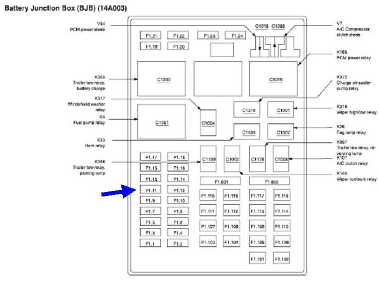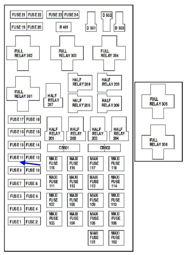 The blue arrow in the second drawing is pointing to that fuse. Drawings 2, 3, and 4 are for the first version of the "Battery Junction Box, (BJB) under the hood. The last three drawings are for the second version. I didn't add an arrow, but it's fuse # 11.
