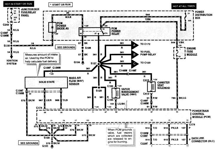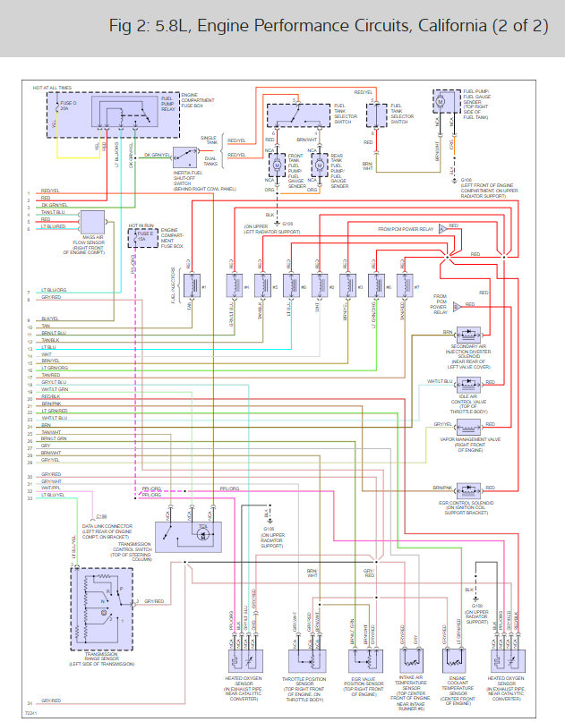 The sixth diagram shows the fuel pump circuit. Pull the fuel pump relay out of its socket, then check for 12 volts on one of the terminals in that socket. If it's missing, recheck fuse # 19 in the under-hood fuse box. Be sure the inertia switch isn't tripped.