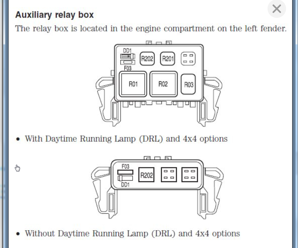 I am attaching the info below for the fuse and relay locations. Please run through this and let us know if there is more information.
