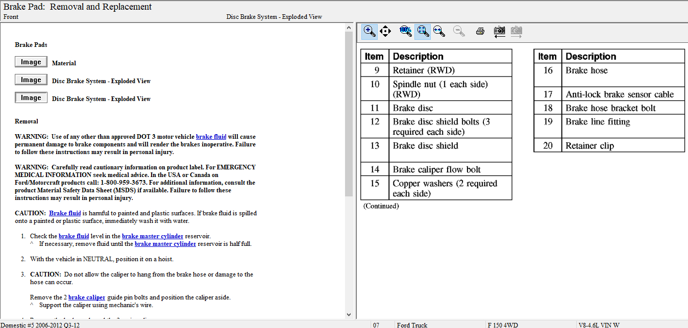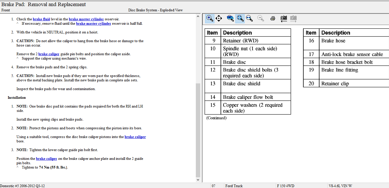 Check our diagrams below how to replace front pads and rotors procedure, also specified permissible measurement values.