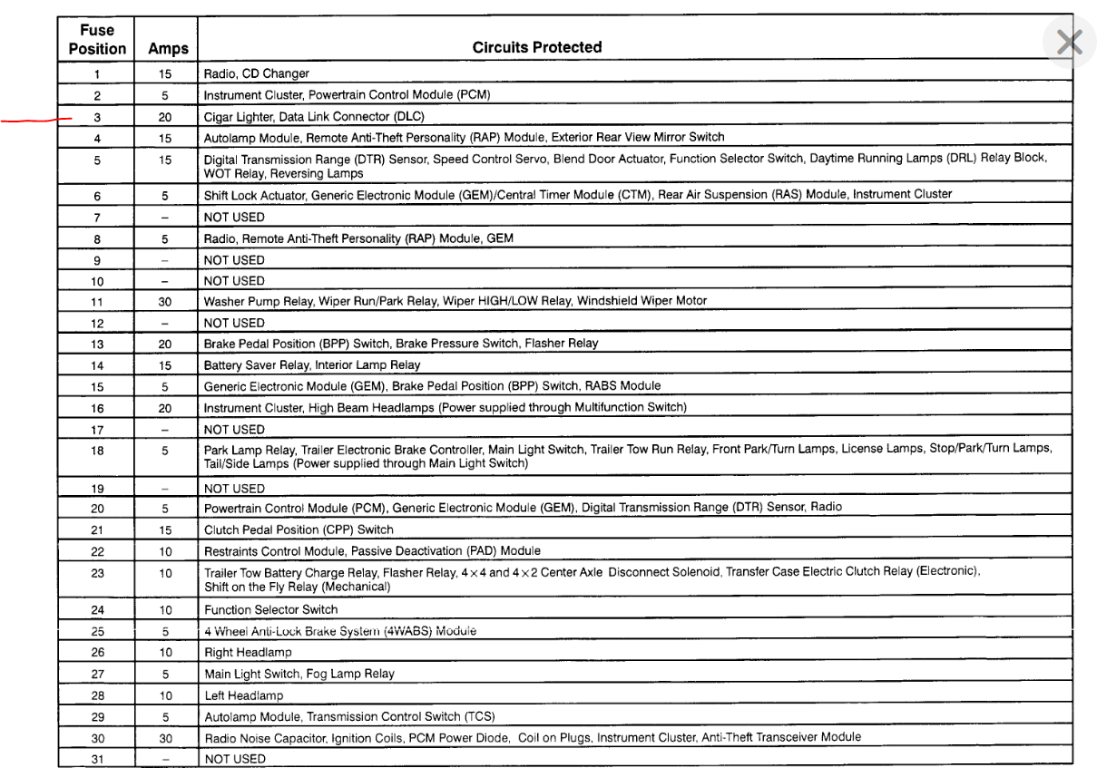 Check the #3 fuse in the under the dash fuse box. It should be a 20A fuse.