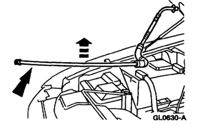 Thread the screw end of the tool into the center of the A/C evaporator core orifice brass tube and pull from the liquid line.