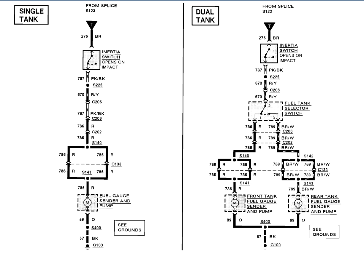 Ok. I just bought this truck. I have dual tanks. After I got it home I was playing around with it a little and I decided to switch the tanks to see how much fuel was in the rear tank. I flipped the switch and the truck stalled 2 seconds after. The rear tank was empty. So, I flipped the switch back to the front tank after I had shut the key off again. (The front tank had a half tank) Then I tried starting is again and it would not start. I'm figureing that the selector valve is now vapor locked or stuck somehow, the relay for the front tank had coencidentally went bad at that moment, or the fuel tank switch may have also coencidentally went bad at that point. I am not sure if there is two pump relays for this truck though. My 88' f-150 had dual tanks and had two relays; one for each tank. I couldn't get a chilton manual that could help me with this dilema. I am assuming that there is only one relay for the fuel pumps though. I think it is the green one. My 88' had a green relay and a brown relay. I would for sure like to know if there is more than one relay so that I can eleiminate that. I would also like to know where the selector valve is for the tanks. I pry should also add that when I use the rear tank I can hear the pump kick on for the second that it should to prime the line. When I try to use the front tank the pump doesent kick on but I can hear something click. Which is pry the relay. Thank you.
