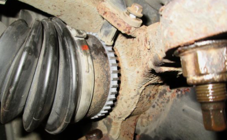 I assume that you had replaced the right front outer constant velocity joint(CV joint) which is fitted with a reluctor ring . Was this ring pre-fitted to the new CV joint or did you have to install it yourself? Please see pictures below.